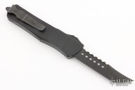 This Troodon by Microtech Knives features a DLC stonewashed Hellhound blade with false top edge. The handle has a black aluminum frame with tip down black stainless steel clip and black titanium hardware. Comes with original box and papers. S/N 020, dated 08/2022. Excellent condition.