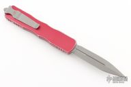 This Dirac Delta OTF automatic by Microtech features a D/E Apocalyptic finished blade with a standard edges. The handle is distressed red aluminum with stainless steel tip down clip and Apocalyptic finished hardware. Serial number 3119 and dated 09/2020. Comes with original box and papers. Excellent Condition.