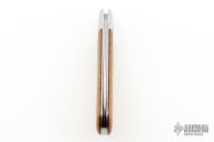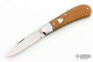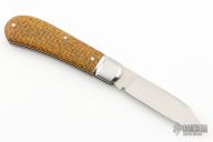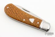 This Zulu slipjoint by Jared Oeser features a hand rub satin finished spear point blade with nail nick. The handle has stainless bolsters, thunderstorm kevlar covers over red liners, stainless steel escutcheon, and stainless steel spring. Comes with a brown leather pocket sheath, original box and COA dated 4-20-16. Has half stop, flush in all positions. Excellent condition.