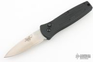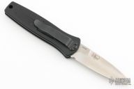 This 3550 Mel Pardue designed side opening auto has a stonewashed 154-CM stainless steel spear point blade with false top edge. Handle is matte black finished aluminum with milled contours, spine-thumb safety button, black stainless steel tip down clip, and lanyard hole. Comes with original box and papers. Has a couple light scuffs, otherwise excellent condition.