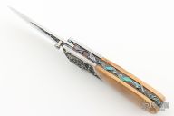 At the age of 14, I began my lifelong profession by becoming the third generation of knife makers in my family. I learned the trade by assisting my father and grandfather in our family's knife making business in the Uthai Thani province of Thailand. In order to continue to learn I attended the technical school and after graduating in 1982, I worked as a trainee with a knife making team. It was here that I first became known for my ability to carve pearl. In 1984, I opened my own shop. Just like my father and grandfather, I carry on the tradition of handcrafting each of my knives by using only the most basic equipment. I believe that the beauty of knife making is being able to feel what you are doing and having a true vision of the knife you are creating. I make folders and balisongs and my preferred handle material is carved or inlayed pearl, but it is very dangerous to work with as it will crack with the slightest error. For this reason, the number of knives I can make is limited to the mistakes I make. Because most of my knives go in collections I use a great deal of mosaic damascus created by Robert Calcinore and Tony Metsala. I believe this steel radiates boldness and brings my knives to life. I also use ATS-34, because it is strong and good for daily use. My personal favorite is Chad Nichols stainless Damascus steel, because it is beautiful and works well for everyday carry knives. Another characteristic of many of my knives is my spring mechanism. Suchat's work was displayed at the Antique Arms Show in Las Vegas in January 2011. R.B. Johnson was impressed with the quality and pricing of Suchat's knives and purchased two of them, and later bought three more in Atlanta at the Blade Show. Corrie Schoeman, a long standing member of the South Africa Knifemakers Guild, who was on the evaluation team for many years stated, "The knife that Suchat made is I think may be the nicest one I have ever seen. It is beautiful." Suchat's knives were on display at the Texas Knife Show in April 2011. Johnny Stout commented that they were "high quality and a great bargain for the price"" and Warren Osborne noted that "they are very nice knives". After seeing Suchat's knives at the 2011 Blade Show, Joe Kious remarked that "these knives are absolutely magnificent and an incredible value."