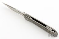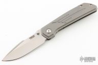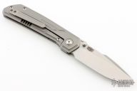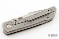 This Mula framelock by Enrique Pena features a hand rub satin finished drop point blade with swedge, notched thumbrest and dual thumbstuds. The handle has a bead blasted titanium frame with a titanium backspacer. Matching tip up titanium clip. Has a couple of light scuffs, otherwise excellent condition.