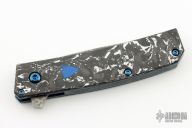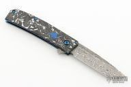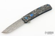 The Benchmade 601-211 Gold Class Tengu is a fully upscale version of the popular 601 flipper. This special edition knife features BiFrost Pattern Damasteel blade, white/black marbled carbon fiber scales, dual blue G-10 inlaid shields, sapphire blue PVD coated stainless steel liners and hardware, Raffir UV reactant SFX Blue Uranium with imbedded brass mesh backspacer. #1041. Excellent condition.