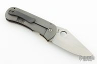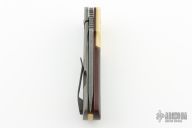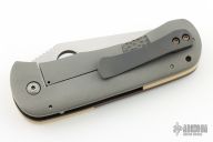 This Dixon by Jonathan McNees features a hand rub satin finished blade with thumbhole and notched thumbrest. The handle has a tumble finished titanium frame, Westinghouse paper micarta bolsters and backspacer, black paper micarta scale with red and black liners, tip up black titanium clip. Nice detent, blade seating and lockup. Has a couple light scratches, otherwise excellent condition.