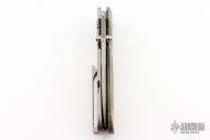 This Terrain 365 collab with Prometheus Design Werx is the Invictus-C. This Compact variant features an Terravantium blade, OD Green linen micarta presentation side, titanium framelock side, hardware, and pivot. The pivot bearings are ceramic with bronze races. Excellent condition.