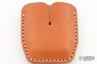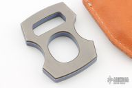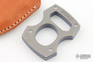 The Contra Cypop is a first for the BRNLY Brand. This three-piece Cypop bottle opener is crafted from three layers, bead blasted titanium on the front and back, blue G-10 in the middle. The three pieces are held together with satin finished titanium hardware. Includes a leather sheath. Excellent condition.