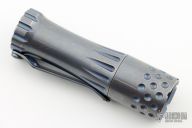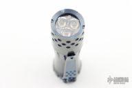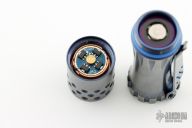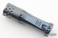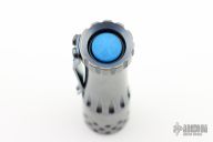 This Malihini flashlight from Mitch Lum/Laulima Metal Craft and Joshua Dawson features a titanium body with an anodized and tumble finish. Nichia 219C 4000k primary LED. Driver: Dragon, Amber. Carclo. Flat sapphire watch "glass" window. McClicky switch. Uses a single 18350 battery. Blue secondarys. Excellent condition.