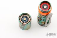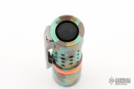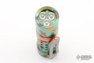 This classy light from The Barrel Flashlight Company features a bead blast titanium body, satin ring sleeve, and 3D milled clip. Glow Gasket installed. From the makers site: Barrel Flashlight Co. flashlights are proudly made in USA. Our lights are turned from solid round bar. About 1000 lumens on high depending on LED’s selected Triple LED output with builds with Cree XP-L HI 5K. The “ pill “ that houses the LED’s and driver is machined from solid for optimum performance and heat transfer. Light measures 3.5 inches long and just under 1 inch in diameter. Light runs on an Efest high capacity 700mAh 16340 unprotected button top rechargeable IMR battery (not included). Interchangeable barrel rings, barrels ( inner sleeve), clips, and screws to customize your light and ability to match your EDC. Light is built with one of the most advanced drivers on the market: the fully programmable Dragon with battery monitoring. The dragon comes in a very user friendly set default of moonlight, low, medium, and high. Rear “ clicky “ button cycles light through modes. For the avid flashlight hobbyists , a secret hidden mode can be entered to program the light. Light is water resistant. Light tailstands very well.