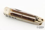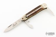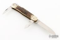 This Stag Multiblade Leverlock by Hubertus has a mirror polished blade, a mirror polished stainless steel clip point blade with nail nick, a mirror polished bottle opener/ flat head screwdriver, cork screw. Scales are stag antler over brass liners, stainless steel back spacer(s), and nickel silver bolsters. Has a couple light scratches, otherwise excellent condition.