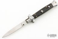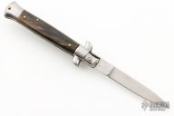 This Swivel Bolster features a mirror polished flat ground blade. The handle has stainless bolsters, front and rear, buffalo horn scales, brass liners, stainless spring. Has some scratches, otherwise good condition.
