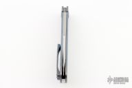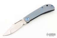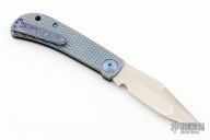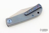This Rebel Slipjoint by Jim Burke features a satin finished multi-ground blade with nail nick. The handle has a two-tone dimpled titanium frame with a zircuti tip up clip, stainless steel spring. Has half-stop. Comes with a zippered case. Excellent condition.