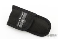 This auto from Smith & Wesson has a bead blasted blade with false top edge. Black aluminium handle. Comes with original box and belt sheath. Has a couple light scuffs, otherwise excellent condition.