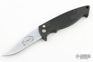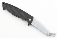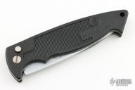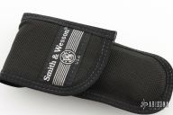 This auto from Smith & Wesson has a bead blasted blade with false top edge. Black aluminium handle. Comes with original box and belt sheath. Has a couple light scuffs, otherwise excellent condition.