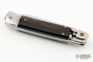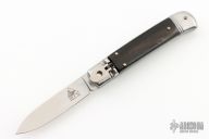 This Lever Lock Auto has a mirror polished stainless steel spear point blade. Handle has buffalo horn scales, steel front and rear bolsters, stainless steel liners and a nickel silver lock release button. Excellent Condition.