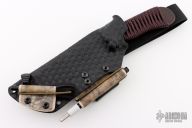 This Bojack by Achimo Knives features a hand forged blade with satin finished grinds and visible temper line, .217" blade stock and 1.692" blade depth, hidden tang construction. The handle has epoxied cord wrapped grip. Comes with a kydex sheath with sharpener and fire steel. Excellent condition.