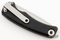 This Blackie Collins designed Sidewinder from Benchmark Knives features a bead blasted drop point blade with partially serrated edge. The handle is comprised of a polymer frame with stainless fittings and tip down pocket clip. Buttonlock auto opens smooth and crisp. Has some scratches, otherwise good condition.