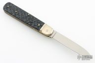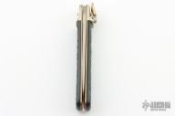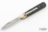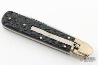 This Boker Leverlock features a drop point blade. The handle is comprised of nickel silver bolsters and jigged black scales over brass liners and stainless steel backspring. Excellent condition.