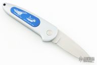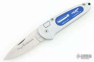 This Boker Top Lock II auto features a satin finished blade. Aluminum frame with blue aluminum inserts with "The Aviators" and #1244. Has a couple light scuffs, otherwise excellent condition.