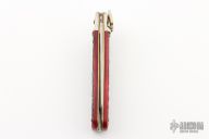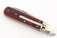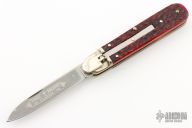 This Boker Leverlock features a drop point blade. The handle is comprised of nickel silver bolsters and red jigged bone scales over brass liners and stainless steel backspring. Has some light scratches and patina, otherwise excellent condition.