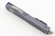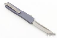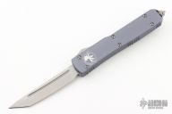 This Ultratech OTF automatic by Microtech features a T/E stonewashed blade. Grey aluminum handle with tip down stainless steel clip. Glass breaker. Comes with original box and papers. Excellent condition. Handle says "20th Anniversary 1994-2014. From the 2014 Blade Show. 3.375" blade 8.5" overall 5" closed.