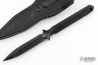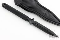 This A.D.O. has a hand ground double edged blade and a black ceramic coating. Single piece construction. The handle is textured and hollowed out, accessible via the removable butt cap. Comes with original box, sheath and papers. Excellent condition.
