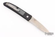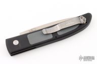 The 3000s automatic from Benchmade is a discontinued model designed by Mel Pardue. Side opening, coil spring. Satin finish partially serrated blade, black aluminum frame with rubber inlays and a tip up stainless steel clip. Has a couple scuffs, otherwise excellent condition.