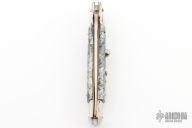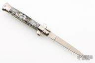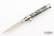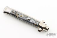 This swivel bolster auto by AB Italy features a satin finished blade with a false top edge. The handle has nickel silver bolsters and butt, multi colored scales and brass liners. Excellent Condition.