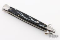 This 13" Picklock by Frank Beltrame features a flat ground blade. The handle has stainless steel bolsters, front and rear, black/white scales, brass liners, stainless spring. Excellent condition.