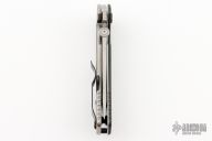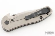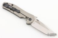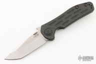 This 0620CF Emerson Tanto by Zero Tolerance features a tanto blade with thumbdisc and wave feature. The handle has a carbon fiber front scale with single stainless steel liner, tumbled titanium lockside, stainless steel lockface insert and a black stainless steel pocket clip. Includes the original box and papers.  S/N 4417. Excellent Condition.
