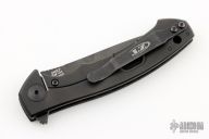 The Dmitry Sinkevich designed ZT 0450CF knife is a compact version of the award-winning 0454 folder. It has an S35VN stainless steel blade with a black DLC finish. A flipper and the KVT ball-bearing pivot produce reliable, quick one-hand deployment. The titanium handle has a sturdy frame lock and a stylish carbon fiber scale that contrasts nicely with the black blade. A reversible tip-up carry pocket clip rounds out the package.  S/N 2036.  Includes original box and papers.  Excellent Condition.