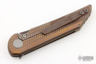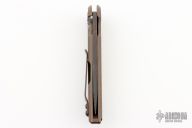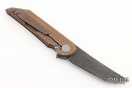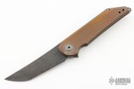 Since the early days of the flagship Kwaiback, we've been bombarded with requests for a slightly smaller blade. But I'm a knifemaker... So I couldn't just make it smaller! I decided to revisit the Kwaiback and start from scratch to make a smaller folder with its own uniqueness. I wanted to make it stand out on its own -- and not just be a smaller Kwaiback. The first thing I did was reduce the thickness of the materials to 5/32nd, which much better suits the 3 ¼” long blade. Then I designed a compact lock geometry package specifically suited for a smaller knife. I set up an extraordinarily small lock insert with overtravel prevention and stuffed a HRD in for good measure! Voila! We have a perfect EDC for those who don’t want a 4” blade!!! And an external stop pin allows the knife to go further between take-downs for cleaning! I designed the Radford to be a perfect EDC companion for those who want to be a bit more covert in their blade choice! SPECIFICATIONS Blade: .15625 Thick, S90V Stainless Steel, Black Acid-Wash Fallout Finish Frame: .15625 Thick, Titanium, Fading Knurl Machining, Differential Anodized Finish Overall Length: 8” Blade Length: 3.25” Closed Length: 4.675” Carry Option: Tip Up Right/Left-Handed Weight: 6.0 oz. Other Features: Pivot Thrust Bearings Hardened Stainless Bearing Races HRD (Hoback Rolling Detent) Hardened Stainless Steel Lock Insert With Overtravel Prevention Engineered Internal Lightening Pockets Standard Sizes On All Screws For Ease Of Replacement Comes with original packaging, Excellent condition.