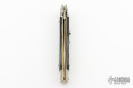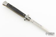 This 11" Swivel Bolster by Frank Beltrame features a tumbled finished bayonet ground blade with false top edge. The handle has stainless steel bolsters, front and rear, buffalo horn scales, mirror polished brass liners and stainless steel spring. Excellent condition.