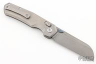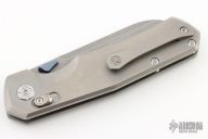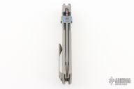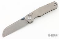 This Chad folder by Kunwu Knives features a satin finished blade with dual anodized titanium thumbstuds and a notched thumbrest. The handle has a textured titanium frame with tip up reversible clip, has a axis style lock. Comes with original box and papers. Has a couple light scuffs, otherwise excellent condition.