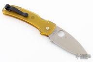 This Shaman Pln by Spyderco features a stonewashed spear point blade with notched thumb and finger rests, thumbhole. The handle has custom Cerberus Micromilled Ultem scales, comes with original black G-10 scales, inlaid stainless steel liners and a stonewashed stainless steel backspacer, 4-way reversible black deep carry clip, lanyard hole at the butt. Comes with original box, clip and papers. Excellent Condition.