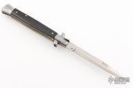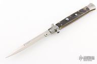 This 11" Swivel Bolster features a polished bayonet ground blade. The handle has stainless steel bolsters, front and rear, synthetic horn scales, brass liners, stainless spring. Excellent Condition.