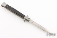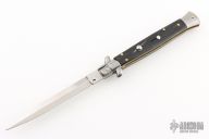 This 11" Swivel Bolster features a polished dagger ground blade. The handle has stainless steel bolsters, front and rear, synthetic horn scales, brass liners, stainless spring. Excellent Condition.