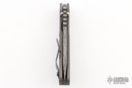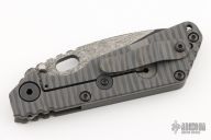 This SNG framelock folder by Mick Strider features a drop point blade and a gray aluminum and flamed titanium frame and tip up titanium clip. Includes Hinderer "Lock Bar Stabilizer" for maximum reverse lock retention. Nice detent, lockup and blade seating. Excellent Condition.