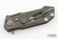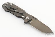 This Half Track from Hinderer Knives features a DLC stonewash finished blade with fullers, notched thumbrest and flipper. The handle has a DLC stonewash finished titanium frame with a G10 scale. Titanium clip is positioned for tip up, right hand carry. Comes with original box and extra bushings. Excellent Condition.