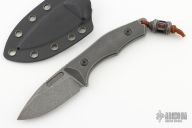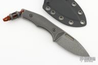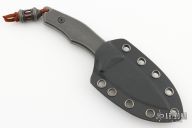 This knife features a dark tumbled blade with a full tang construction and a notched thumbrest.  .133" Blade Stock.  1.189" Blade Depth.  The handle has dark tumbled steel scales.  Includes a kydex sheath and the original box.  Excellent Condition.