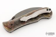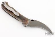 This Elvia Folder by Korth Cutlery features a DLC hawkbill blade with thumbdisc. The handle has Elforin scales, orange peel finished titanium liners and a tip up titanium clip with g10 backspacer. Comes with Velcro case, COA, and patch. Rides on IKBS, nice detent, lockup and blade seating. New from maker!