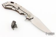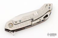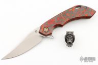 This Wayfarer 247 from Olamic Cutlery features a satin finished clip point blade with swedge, thumb hole, notched thumb rest and flipper. The handle features a Fat Carbon Mars Valley scale with jewelled finish lock side. Has matching pocket clip is positioned for tip up carry, floating "neontropic" anodized titanium backspacer. The Wayfarer 247 is very comfortable in the hand and flips well with no wrist action needed. Blade is centered when closed and locks up with no play. Comes with zippered case, tool, bead, and maker's card. Serial T050B 1/5/2023.  Excellent condition.