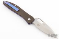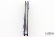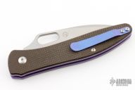 This Rager from Serge Panchenko features a stonewashed blade with a thumbhole. The handle has micarta scales over anodized titanium scales with a matching tip up pocket clip. Includes the original box and papers. Excellent Condtion.