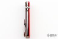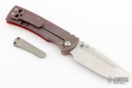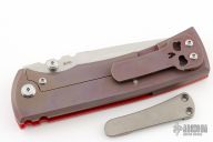 This Chaves Ultramar Liberation Drop point features a satin finished blade with the Chaves logo. The handle is made up of red G10, anodized titanium, skull pocket clip (positioned for tip up carry), and a titanium backspacer.  Includes an extra Titanium pocket clip. Excellent Condition.