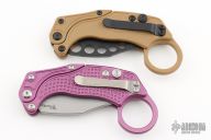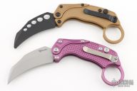 Reat Knives is making yet another splash with the EXO-K Gravity Karambit Knife. That's right: it's both a Karambit and a Gravity Knife. By holding down the button and flicking your wrist, the blade and frame will rock back and forward again, deploying the wickedly-curved blade into the open position where it locks. Push the button again and reverse the steps to close the knife. Thanks to its reversible pocket clip, you can carry it to your preference. And speaking of preferences, finger rings aren't for everyone. In the case of EXO-K, it's removable! Like any good trick, operating this attention-grabbing knife will take some practice—which can be done safely with the included blue trainer—but once you have it down, you'll be flipping this bad boy into action. It's great for day-to-day cutting, fidgeting, and self-defense situations. The Reate EXO-K takes pocket knife fun to a new level with an innovative, practical, and entertaining design. It's built to Reate's exacting quality standard with tough and affordable materials, like aluminum and Bohler N690 steel, to keep the cost down. The EXO-K is truly a knife like no other.