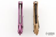 - Handle: Purple-anodized aluminum handle scales with frag-texture milling and a titanium backspacer.