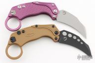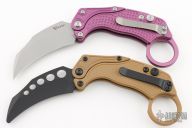 Reat Knives is making yet another splash with the EXO-K Gravity Karambit Knife. That's right: it's both a Karambit and a Gravity Knife. By holding down the button and flicking your wrist, the blade and frame will rock back and forward again, deploying the wickedly-curved blade into the open position where it locks. Push the button again and reverse the steps to close the knife. Thanks to its reversible pocket clip, you can carry it to your preference. And speaking of preferences, finger rings aren't for everyone. In the case of EXO-K, it's removable! Like any good trick, operating this attention-grabbing knife will take some practice—which can be done safely with the included blue trainer—but once you have it down, you'll be flipping this bad boy into action. It's great for day-to-day cutting, fidgeting, and self-defense situations. The Reate EXO-K takes pocket knife fun to a new level with an innovative, practical, and entertaining design. It's built to Reate's exacting quality standard with tough and affordable materials, like aluminum and Bohler N690 steel, to keep the cost down. The EXO-K is truly a knife like no other.