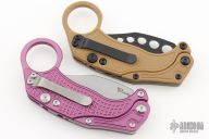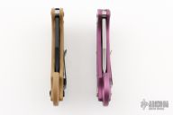 - Handle: Purple-anodized aluminum handle scales with frag-texture milling and a titanium backspacer.