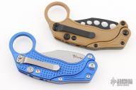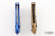 - Handle: Blue-anodized aluminum handle scales with frag-texture milling and a titanium backspacer.