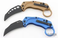 - Blade: Black hawkbill-style Karambit blade made from Bohler N690 steel.