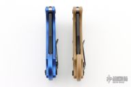 - Handle: Blue-anodized aluminum handle scales with frag-texture milling and a titanium backspacer.